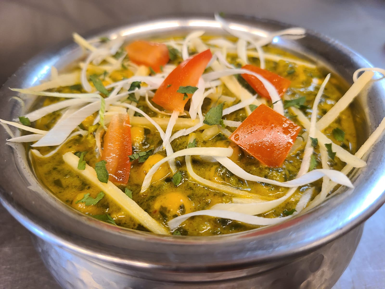 200. CHANA PALAK €8.90 Kicherbsen in würziger Spinat Kreation mit Ingwer (auf Wunsch VEGAN) Category: MITTAGSMENU