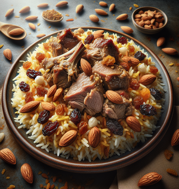 81. CHICKEN oder LAMM BIRYANI. €15.90 Hähnchen oder Lamm mit Mandeln und Rosinen mit Reis gebraten Category: BIRYANIS